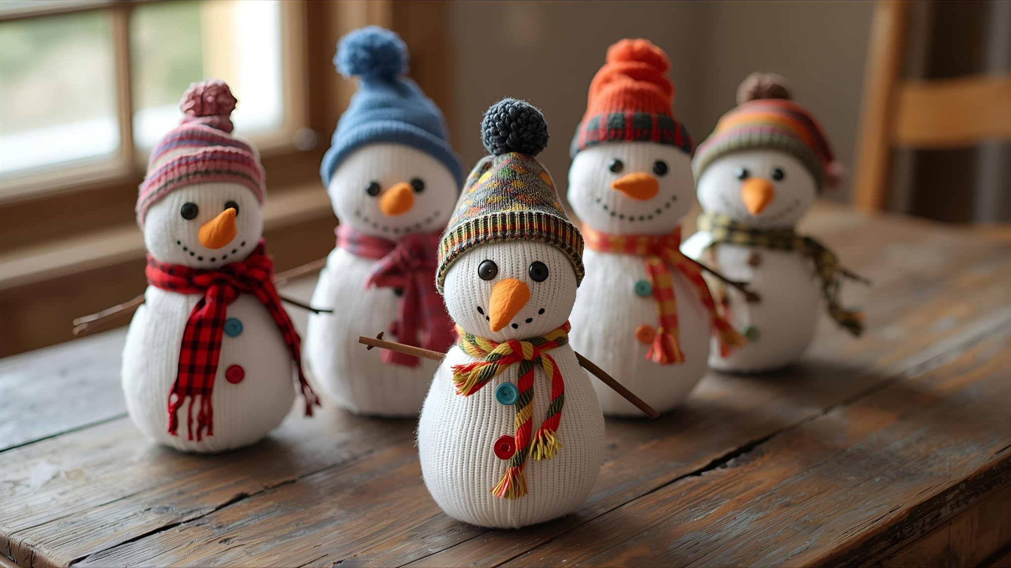 Sock snowmen are soft, cute, and perfect for little hands. My son loves squeezing the sock and helping pour rice or stuffing inside. They sit nicely on shelves and bring a playful, cozy vibe to your Christmas setup. This snowman craft requires no sewing, and you can use old socks you already have — making it very budget-friendly. Each snowman turns out unique, which adds to the charm.