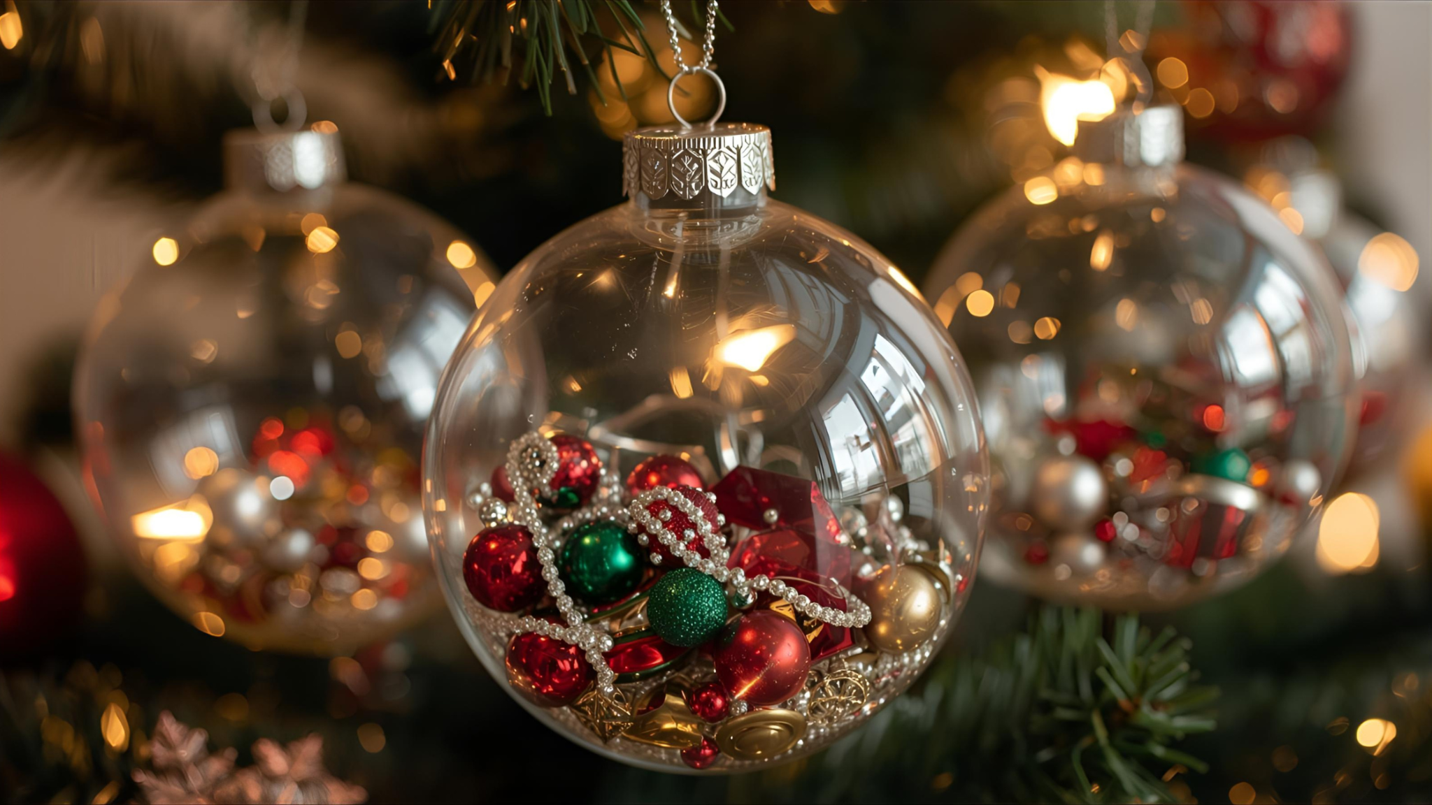 3. Clear Ball Ornaments Filled with Holiday Trinkets