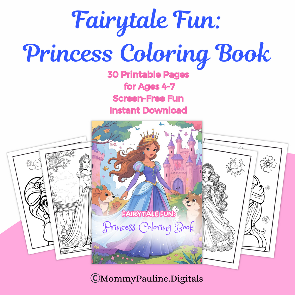 Fairytale Fun: Princess Coloring Book – 30+ printable princess-themed pages with castles, gowns, and fairy-tale friends