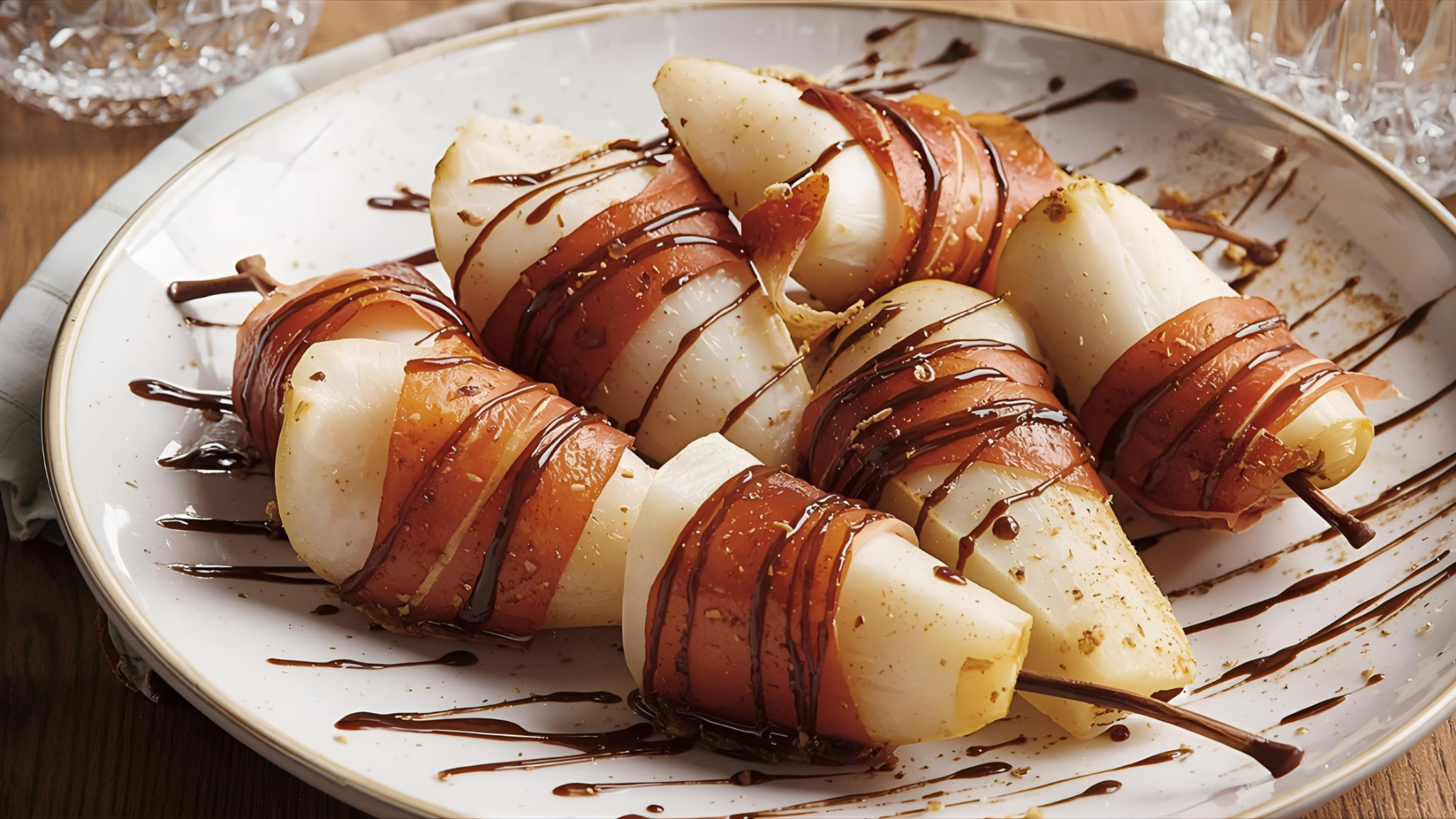 11. Prosciutto-Wrapped Pears with Balsamic Drizzle