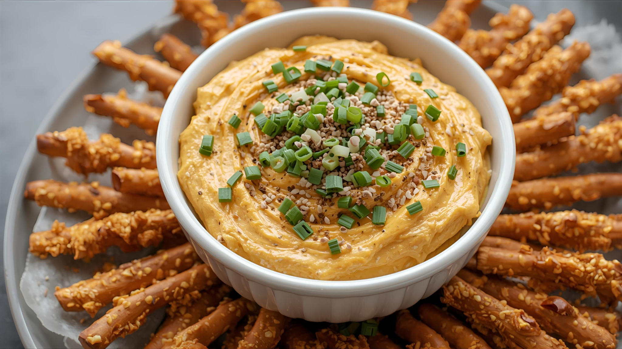 12. Pumpkin Deviled Dip with Pretzel Sticks