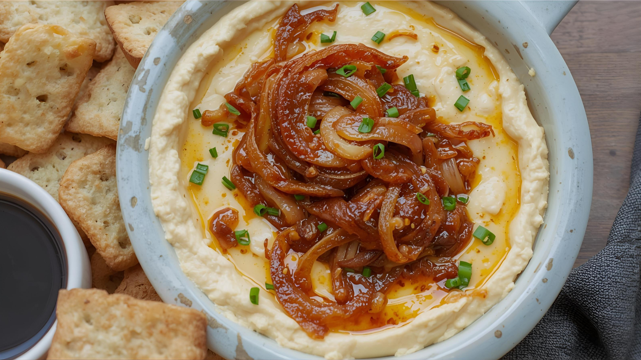 Rich and cheesy with sweet caramelized onions — a cozy way to start the meal.