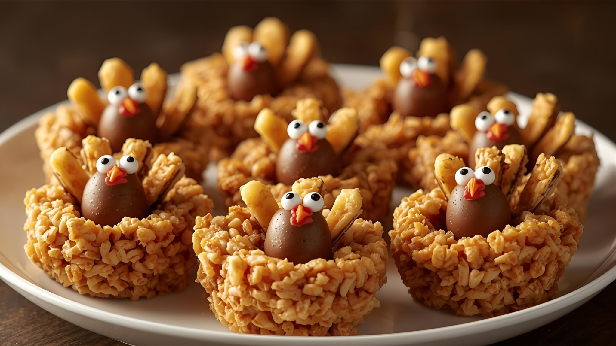 These crunchy little nests hold candy “eggs” or mini chocolate treats — my son loves pressing the cereal into muffin cups.