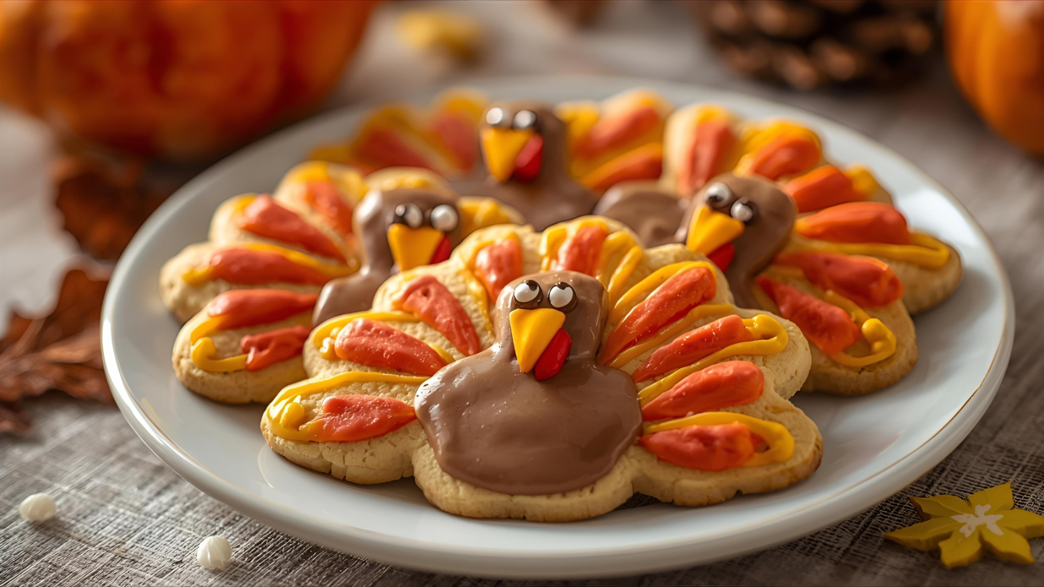 4. Turkey-Shaped Sugar Cookies With Colorful Icing
